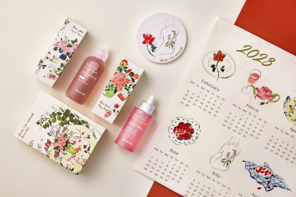 공그림 작가의 특별한 디자인이 더해진 '마몽드 로즈 하이드라 글로리 앰플'은 5겹 히알루론산과 다마스크 장미꽃수 60.4%를 함유해 깊은 보습과 수분광을 선사해주는 제품이다. '마몽드 로즈 파하 리퀴드 마스크'는 마일드 필링 성분 PHA를 7% 함유해 밤사이 묵은 각질을 정돈해준다.