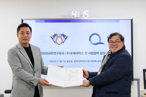 경희의과학연구원은 지난달 7일 큐제네틱스와 연구교류 활성화 및 공동 발전을 위한 사업협력 협정 협약을 체결했다.