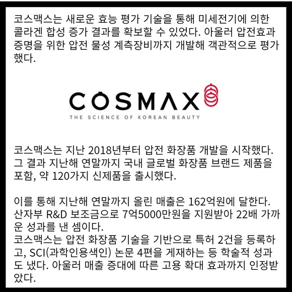 [카드] 코스맥스 압전 화장품 '대한민국 기술대상' 수상