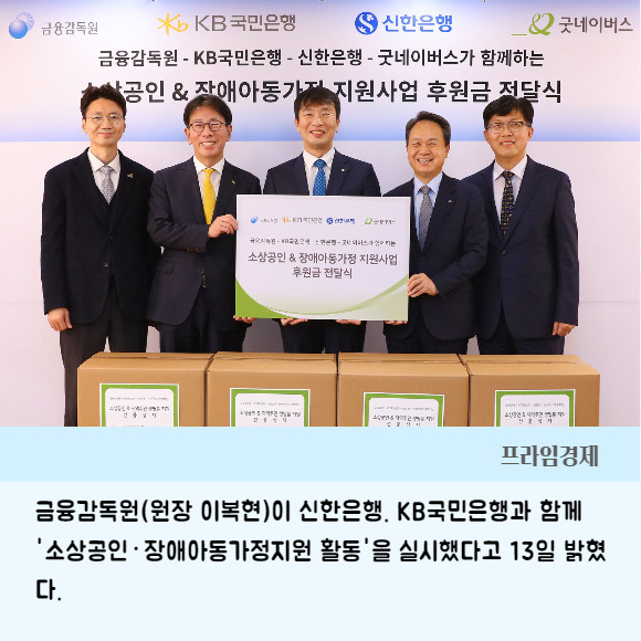 [프라임경제] 금융감독원(원장 이복현)이 신한은행. KB국민은행과 함께 '소상공인·장애아동가정 지원 활동'을 실시했다고 13일 밝혔다.