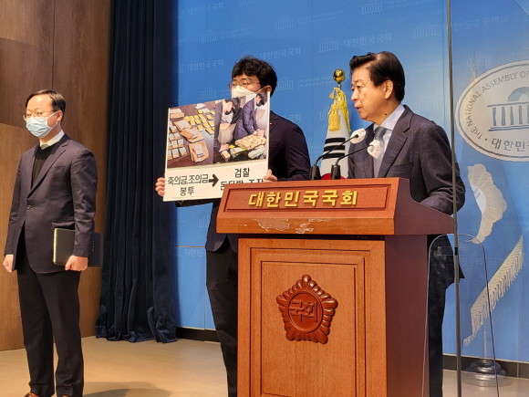그러면서 "일부는 봉투도 뜯지 않고 축의금, 부의금 그대로 보관해뒀다"며 "압수수색 영장에도 없던 것을 불법으로 조의금을 현금 뭉치로 만들어 여론재판을 했다"고 목소리를 높였다.