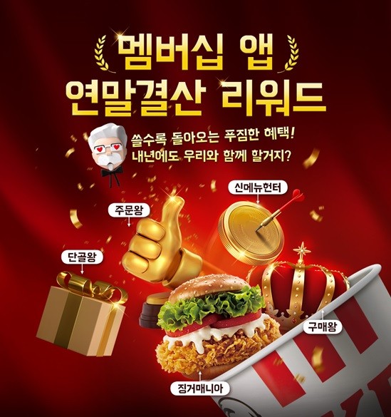 이에 KFC는 올해의 구매왕, 단골왕을 비롯 VIP등급 회원, 12월 한달 간 최다 구매자 등을 선정해 다양한 경품을 증정할 계획이다.