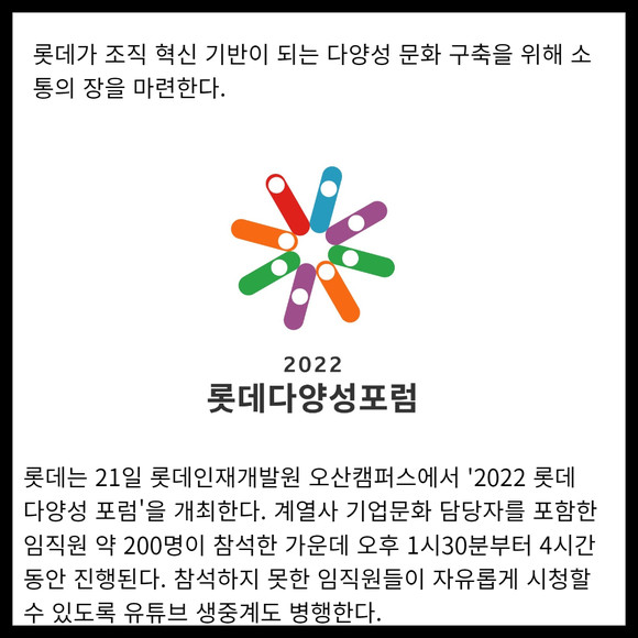 [프라임경제] 롯데가 조직 혁신 기반이 되는 다양성 문화 구축을 위해 소통의 장을 마련한다.