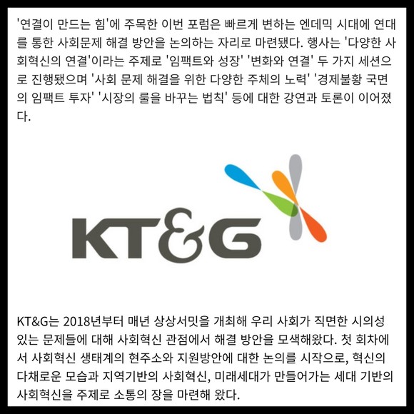 [카드] KT&G, 사회혁신 전문가 포럼 '제5회 상상서밋' 개최