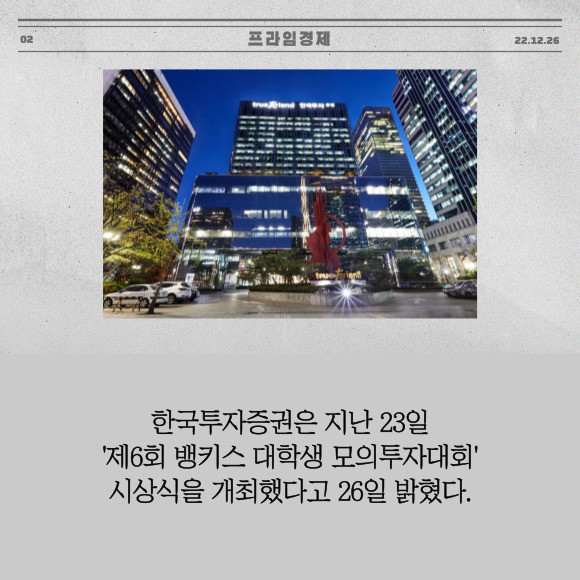 [프라임경제] 한국투자증권은 지난 23일 '제6회 뱅키스 대학생 모의투자대회' 시상식을 개최했다고 26일 밝혔다.