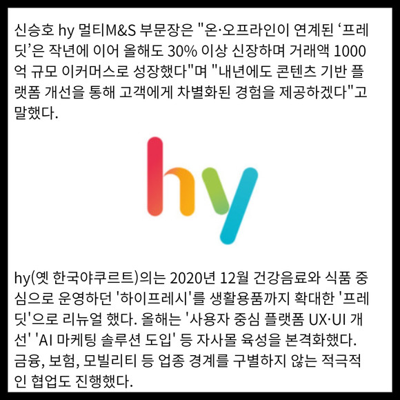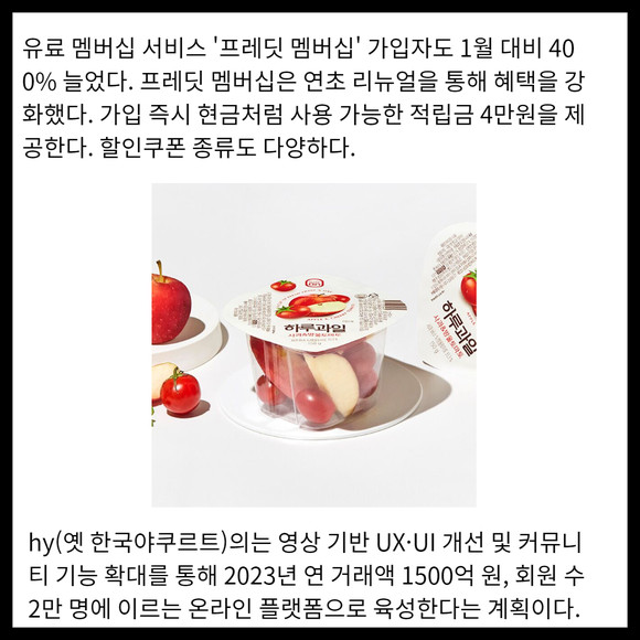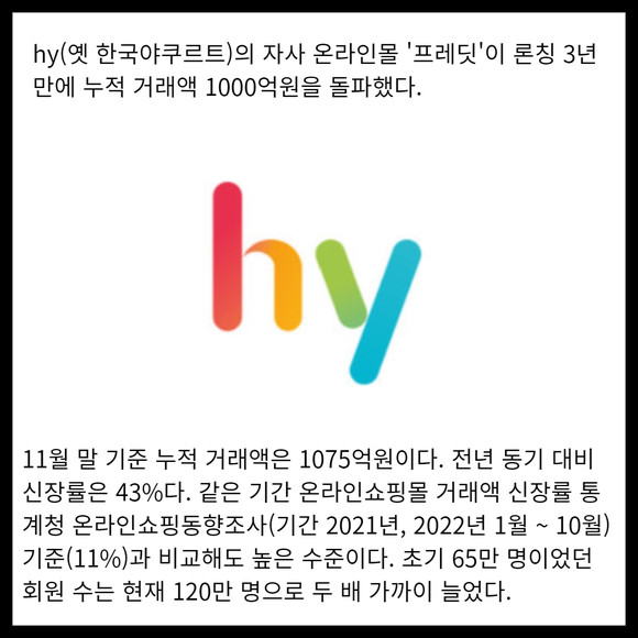 [카드] hy(옛 한국야쿠르트) '프레딧' 2022년 누적 거래액 1000억원 달성