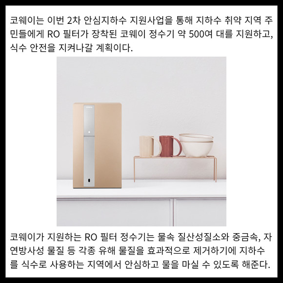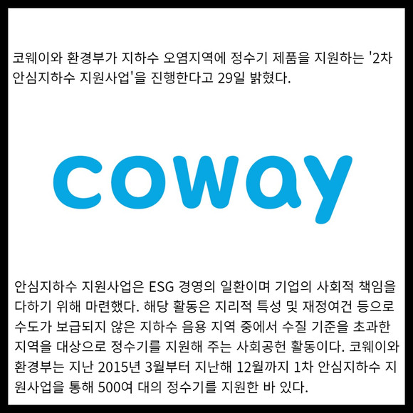 [카드] 코웨이, 환경부와 '2차 안심지하수 지원사업'