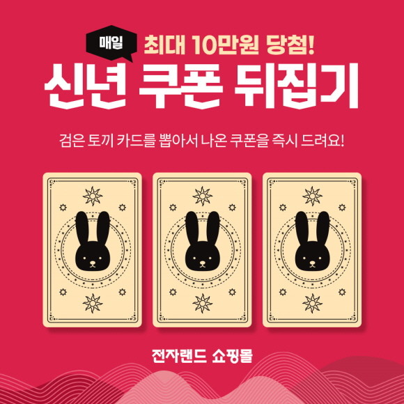 본 이벤트는 이벤트 페이지 내에서 검은 토끼 카드를 선택하면 당일 사용 가능한 전자랜드쇼핑몰 쿠폰을 증정하는 이벤트이다. 전자랜드쇼핑몰 회원이면 이벤트 기간 내 누구나 매일 1회씩 참여 가능하다. 본 이벤트는 '꽝'이 없는 이벤트로 이벤트 참여자는 최대 10만원 할인권을 포함해 비가전 전용 쿠폰, 가전 전용 쿠폰, 래플 응모권 등 다양한 쿠폰을 확률에 따라 매일 획득할 수 있다.