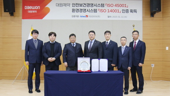 대원제약은 자사의 생산 시설인 향남공장과 진천공장이 환경경영시스템(ISO 14001)과 안전보건경영시스템(ISO 45001) 국제 표준 인증을 받았다.