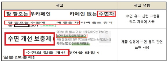 233건 중 151건(국내 18건, 해외 133건)은 '잠 잘오는' '숙면에 좋은' 등과 같은 표현을 사용해 소비자가 해당 제품을 수면 유도 효과가 있는 건강기능식품으로 오인·혼동할 우려가 있었다.