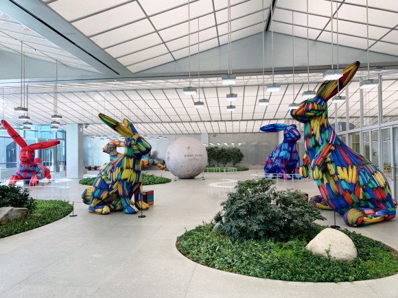 먼저, 다양한 문화 행사를 선보인다. 목동점 7층 글라스하우스에서는 다음달 11일까지 동물을 다양한 색깔과 재료로 표현해 작업하는 조각가 김우진 작가의 '래빗 유토피아전' 전시를 진행한다. 이번 전시에서는 계묘년을 기념해 토끼 모양으로 제작된 작품만 전시되는 게 특징이다. 더현대 서울 6층에 위치한 복합문화공간 알트원(ALT.1)에서는 다음달 4일부터 프랑스 화가 다비드 자맹의 국내 두 번째 개인전 '다비드 자맹: 프랑스에서 온 댄디보이' 전시도 진행한다. 이번 전시에서는 다비드 자맹의 신작 100점을 포함해 그림 150여 점을 선보인다.