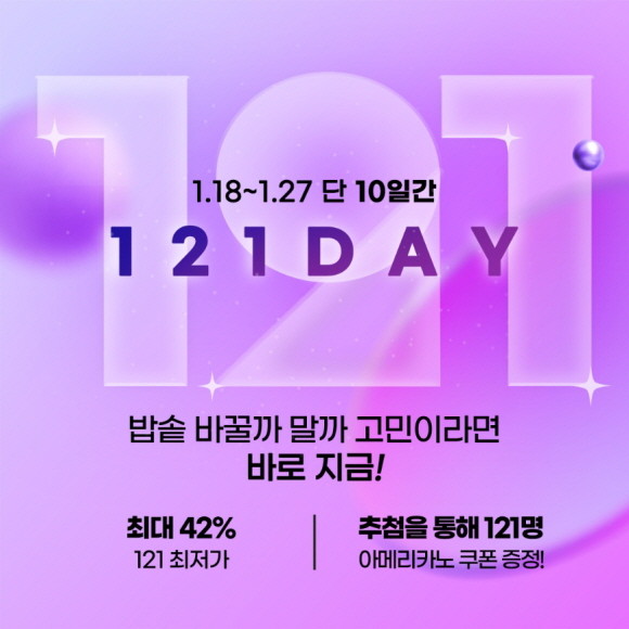 쿠첸이 오는 27일까지 쿠첸 공식 쇼핑몰 쿠첸몰에서 '121 데이' 기획전을 진행한다.
