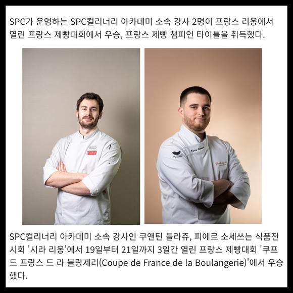 [프라임경제] SPC가 운영하는 SPC컬리너리 아카데미 소속 강사 2명이 프랑스 리옹에서 열린 프랑스 제빵대회에서 우승, 프랑스 제빵 챔피언 타이틀을 취득했다.