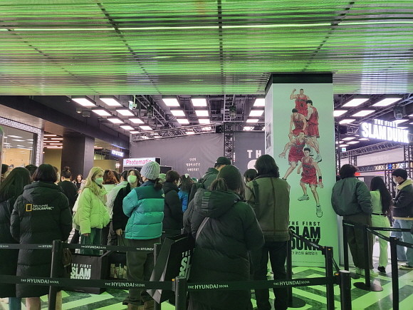 지난 26일 더현대 서울에 '더 퍼스트 슬램덩크 팝업스토어'가 개장했다. 영하권의 추운 날씨에도 불구하고 개장 전날인 25일 아침부터 26일 새벽까지 수백 명이 줄을 서는 진풍경이 벌어졌다.