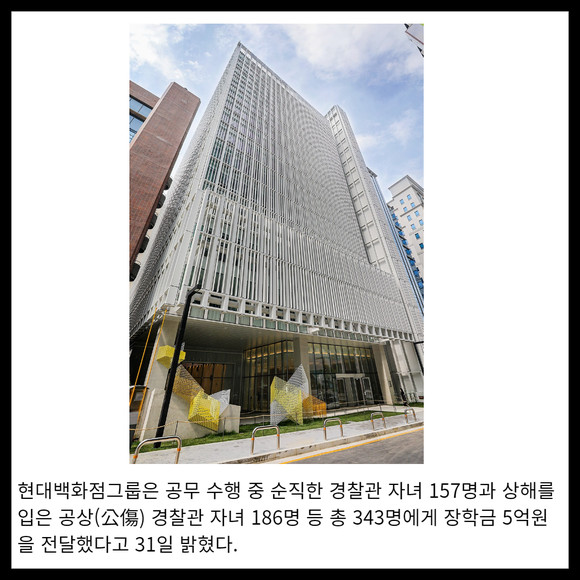 [카드] 현대백화점그룹, 순직·공상 경찰관 자녀에게 장학금 5억 전달