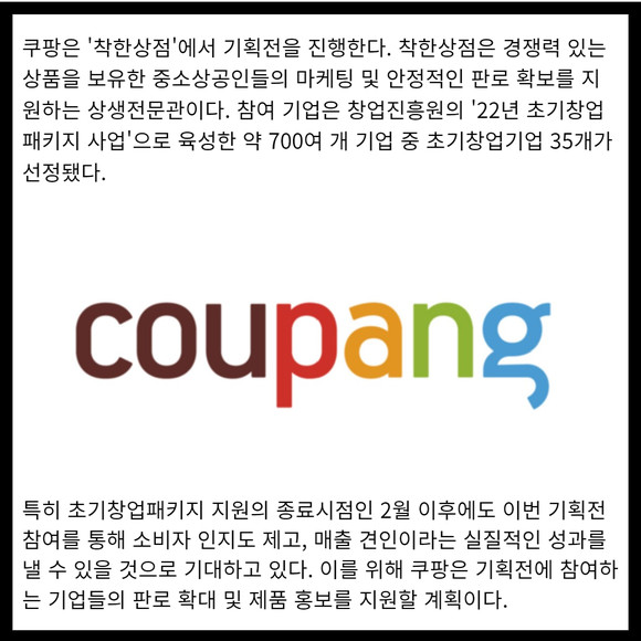 [카드] 쿠팡-창업진흥원, 초기창업기업 판로지원 확대