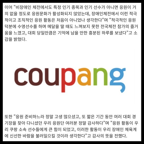 쿠팡, 장애인 선수단 소속 선수 편지 공개