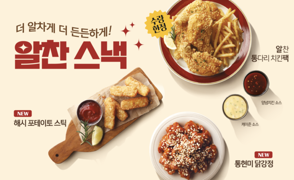 여기에 지난해 12월 출시된 '알찬 통다리 치킨팩'을 함께라면 더욱 알차고 든든한 스낵 시리즈를 완성할 수 있다. '알찬 통다리 치킨팩'은 촉촉한 점보 사이즈 통닭다리 4조각과 케이준 후라이로 풍성하게 구성됐다.