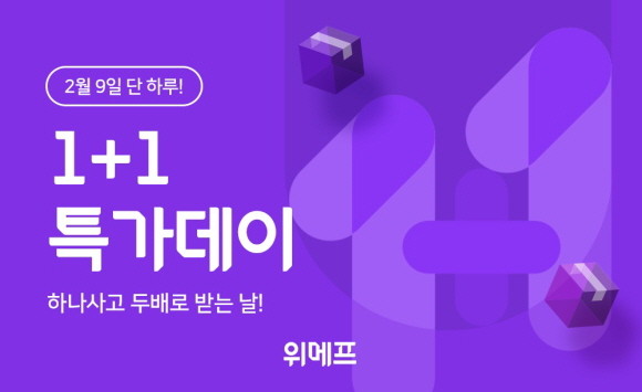 위메프가 9일 단 하루 '1+1특가데이'를 진행한다. © 위메프