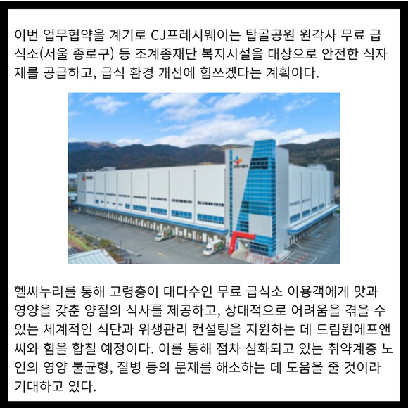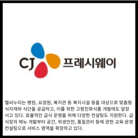 [카드] CJ프레시웨이 "노인 무료 급식 질 향상 나선다"