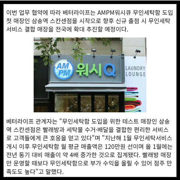 베터라이프-와스코, AMPM워시큐 내 무인세탁함 도입 MOU