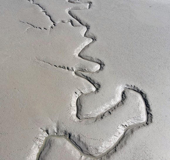 유네스코 세계자연유산으로 선정된 전남 신안은 갯벌 중 생물다양성의 보고라 불리는 진흙갯벌 천지다. 그 갯벌위에 구비도는 물길도로가 놓였다. 마치 육지의 구비길, 영산강의 한반도지형 느러지처럼 구비길이 새겨졌다. 그 옆을 따라 조개와 낙지 등을 잡는 어부의 발자국도 함께 새겨졌다.