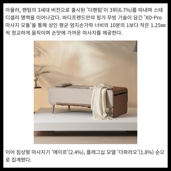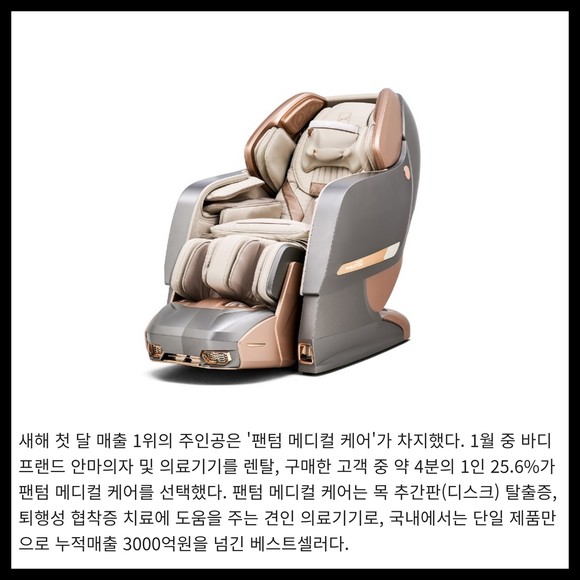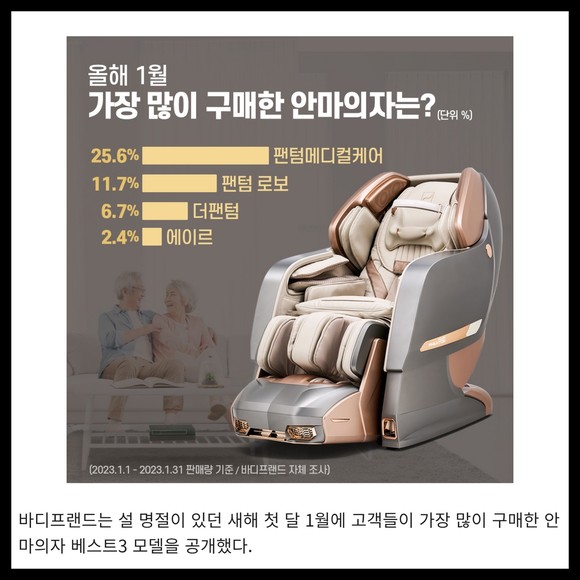 [프라임경제] 바디프랜드는 설 명절이 있던 새해 첫 달 1월에 고객들이 가장 많이 구매한 안마의자 베스트3 모델을 공개했다.