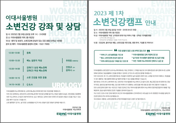 이대서울병원 소변건강연구소 오는 24일 이대서울병원 지하 2층 대강당에서 건강강좌를 개최한다. © 이화의료원