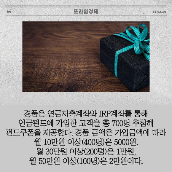 연금저축·IRP계좌서 월 10만원 이상 적립식 펀드 가입 고객 대상