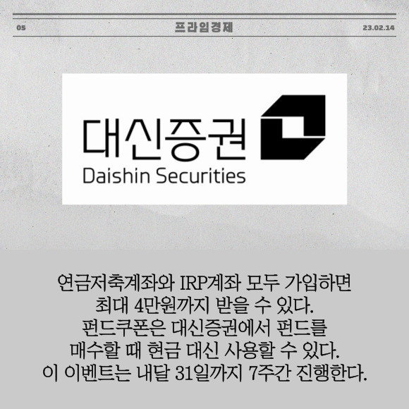 [카드] 대신證 '유비무환 연말정산, 연금펀드 가입' 이벤트