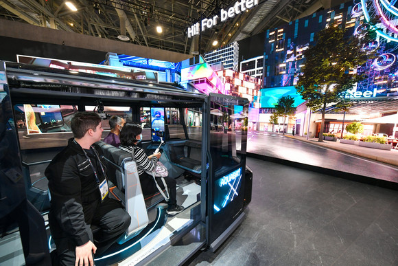 지난 CES 2023에서 관람객들이 현대모비스의 유망 특허 기술들이 탑재된 미래형 콘셉트카 엠비전 시리즈를 체험하고 있는 모습. ⓒ 현대모비스