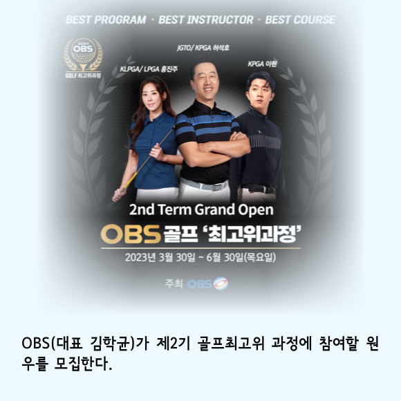 [프라임경제] OBS(대표 김학균)가 제2기 골프최고위 과정에 참여할 원우를 모집한다.