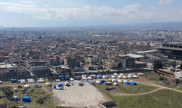 튀르키예-시리아 대지진으로 인해 집과 건물이 붕괴돼 갈곳을 잃은 이재민들이 넓은 공터에서 천막을 치고 힘든 나날을 이어가고 있다. ⓒ그린닥터스
