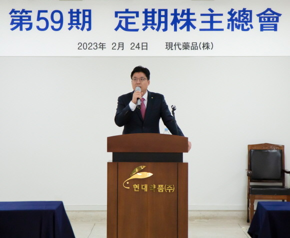 현대약품이 지난 24일, 천안 본사 대회의실에서 제 59기 정기 주주총회를 개최하고 올해 핵심 경영 전략 및 성장 비전을 발표했다. © 현대약품