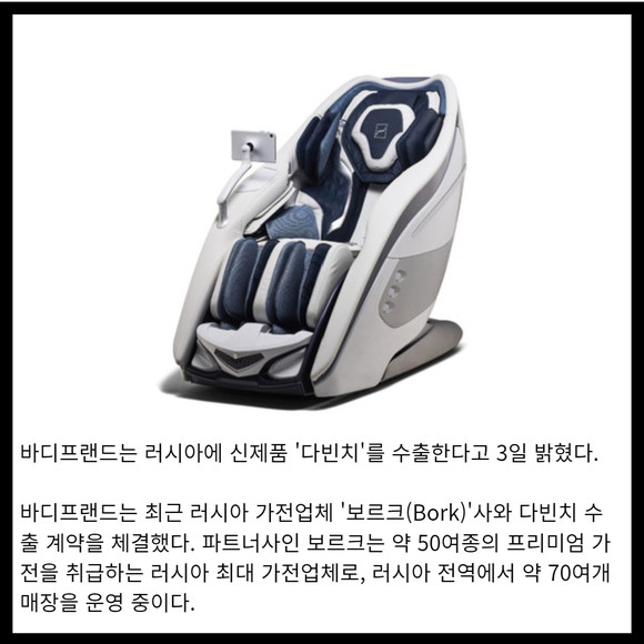[카드] 바디프랜드, 러시아에 안마의자 '다빈치' 수출 쾌거