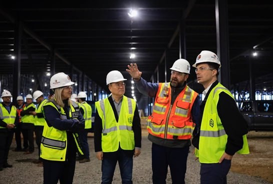 피트 부티지지 미국 교통부 장관(오른쪽)이 켄터키 주 글렌데일에 위치한 블루오벌SK 켄터키 배터리 공장 건설 현장을 둘러보고 있다. ⓒ 미국 교통부