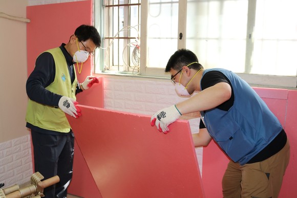 에너지효율 개선 시공 중인 임직원들의 모습. ⓒ 포스코인터내셔널