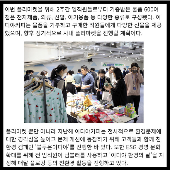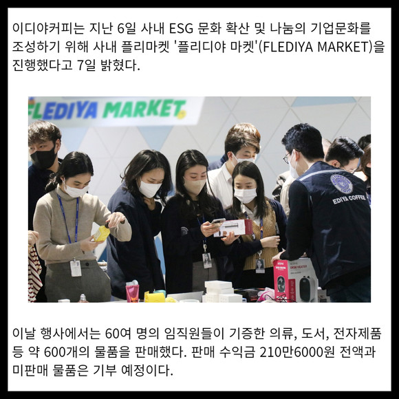 [카드] 이디야커피, 사내 플리마켓 수익금 기부 'ESG 실천'