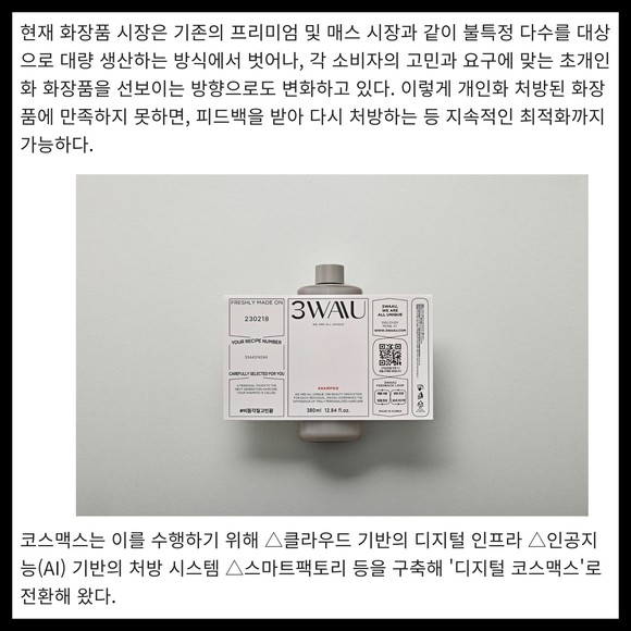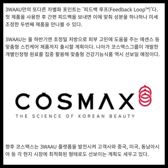 [카드] 코스맥스, 맞춤형 플랫폼 '3WAAU' 론칭