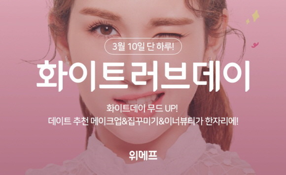 위메프는 먼저 10일 하루 동안 화이트데이 뷰티 기획전 '화이트러브데이'를 진행한다.