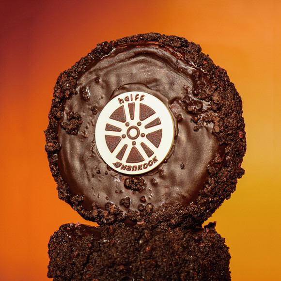 팝업스토어에서 판매되는 대표 메뉴는 한국타이어 모형의 크로넛(크로아상과 도넛이 합쳐진 형태의 디저트)과 핫도그 모양의 도넛이다. ⓒ 한국타이어