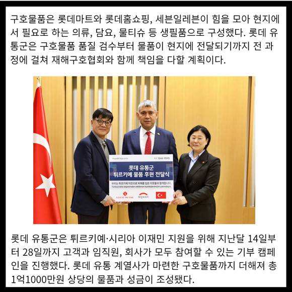 [카드] 롯데 유통군, 튀르키예 지진 피해 구호물품 전달