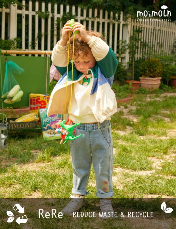 한세엠케이의 유니크 스칸디 스타일 브랜드 모이몰른이 지속가능성의 가치를 담은 '리리(ReRe) 화섬점퍼' 봄 시즌 신상품을 선보였다. © 한세엠케이