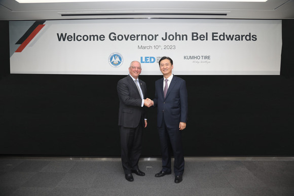 이날 존 벨 에드워즈(John Bel Edwards) 주지사가 이끄는 아시아 무역 사절단은 서울 금호타이어 본사를 방문해 금호타이어 경영진과 회동했다.