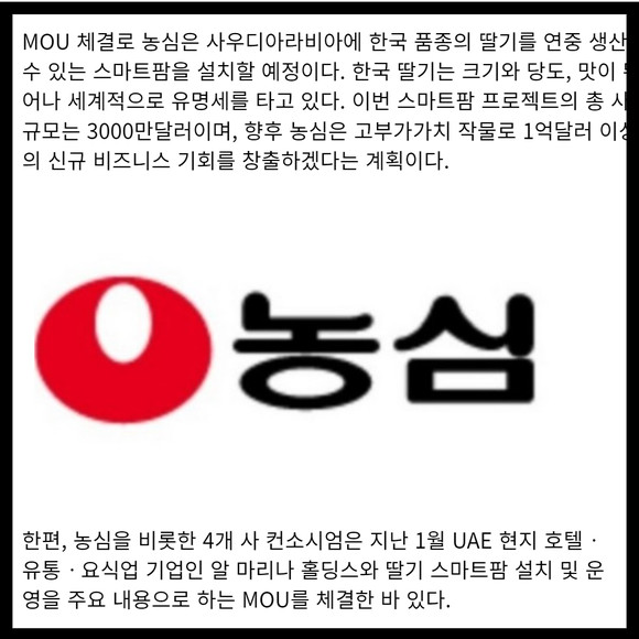 [카드] 농심, UAE 이어 사우디에 스마트팜 수출