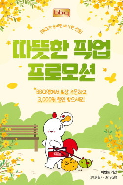 이에 BBQ는 13일부터 일주일 동안 BBQ앱·웹에서 방문포장 주문으로 치킨을 포함한 2만원 이상 주문 시 3000원 할인 쿠폰을 매일 한 장씩 즉시 증정한다.