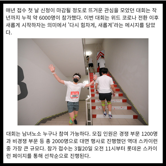 [프라임경제] 롯데월드타워가 오는 4월22일 국내 최고 수직마라톤대회 '2023 스카이런(SKY RUN)'을 개최한다.