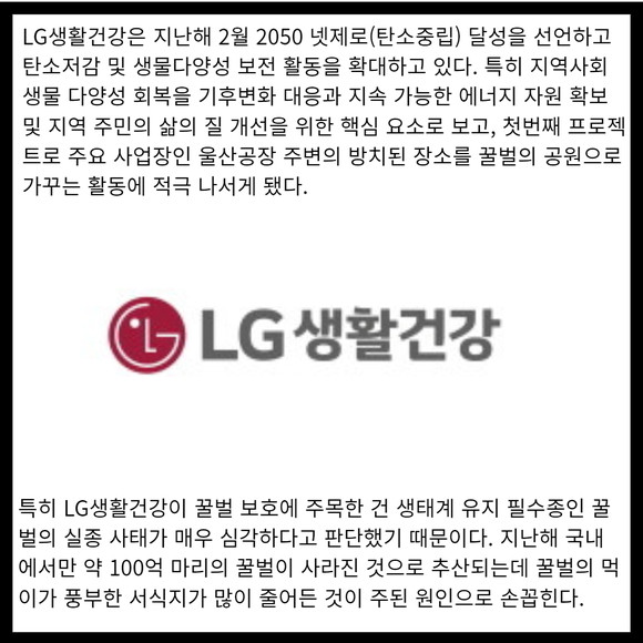 [카드] LG생활건강 울산 '꿀벌의 공원' 조성 완료