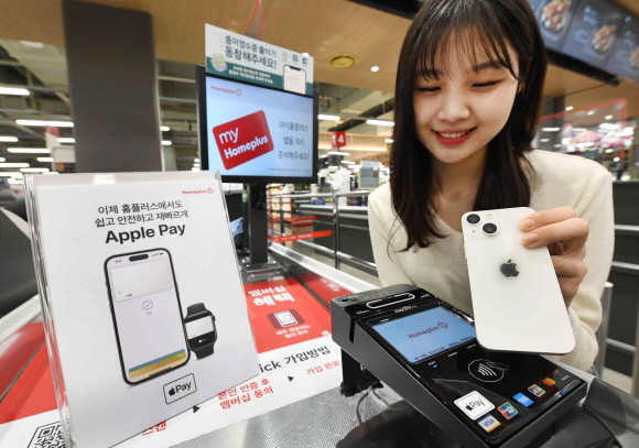 홈플러스가 간편 결제서비스인 'Apple Pay'를 지난 21일 도입, 대형마트·몰·익스프레스에서 사용 가능하다. © 홈플러스