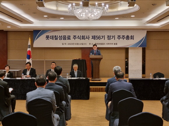롯데칠성음료는 22일 오전 정기 주주총회를 열고 신 회장의 사내이사 선임 등의 안건을 처리했다. © 롯데칠성음료